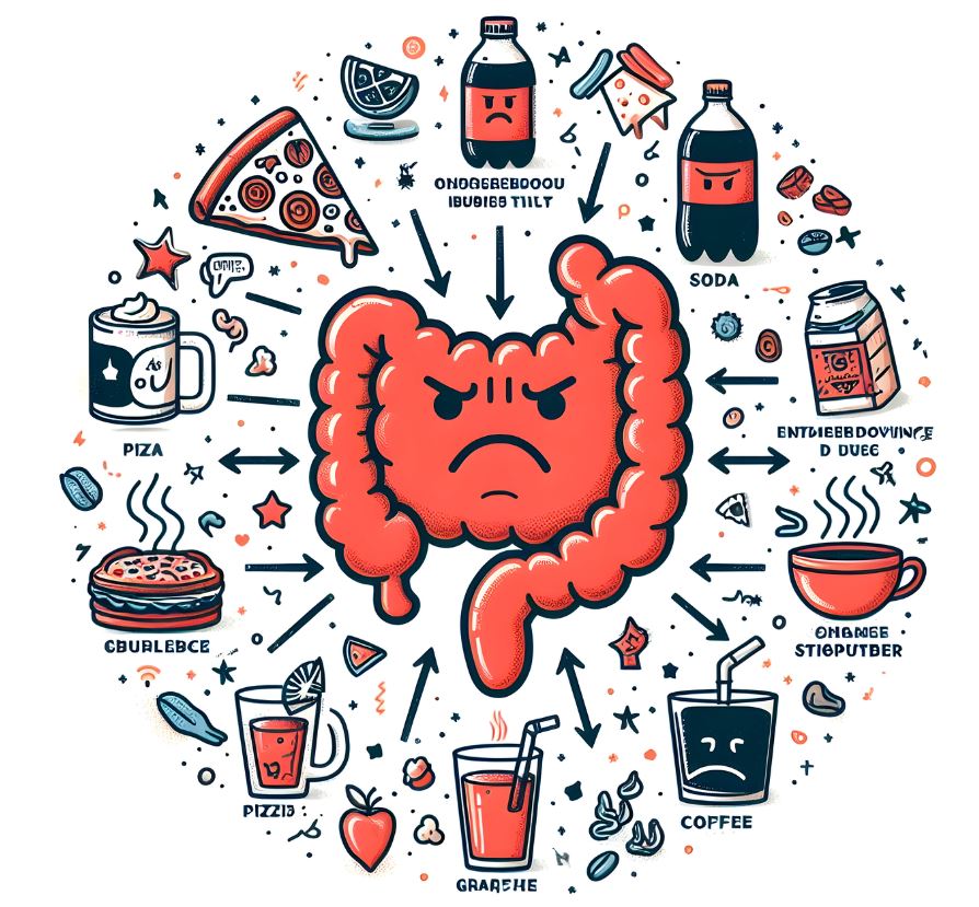불규칙한 식사 시간 자극적인 음식(매운 음식, 기름진 음식 등) 카페인, 탄산음료 섭취 등