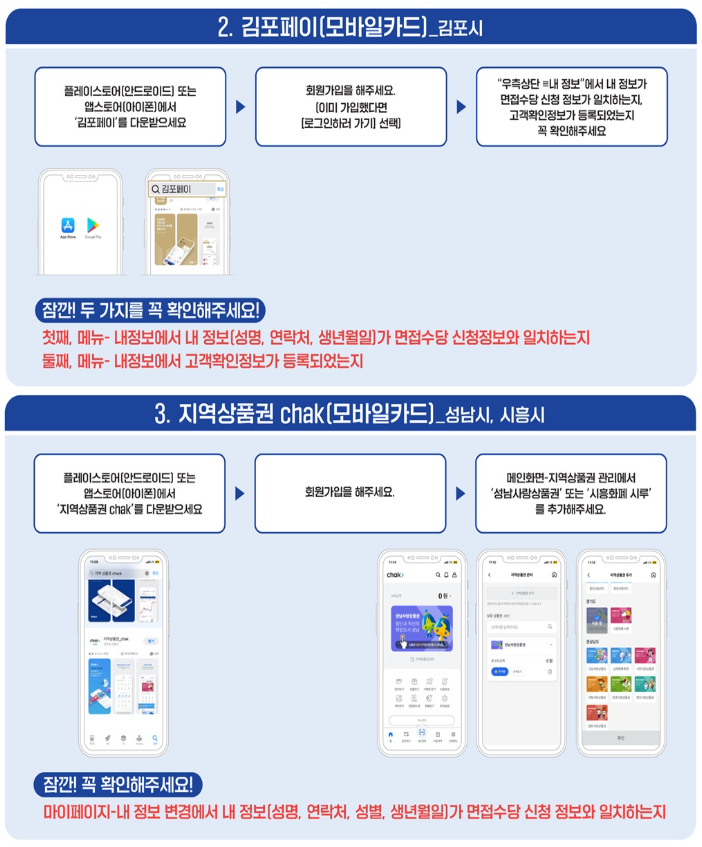 • 승인 후 지급 → 선택한 지역의 지역화폐 카드 또는 앱으로 충전 지급
