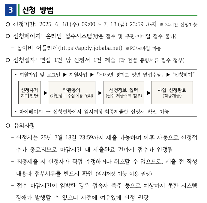 이번 글에서는 2025년 경기청년 면접수당 신청방법부터 지원 내용, 주의사항까지 꼼꼼하게 알려드리겠습니다.