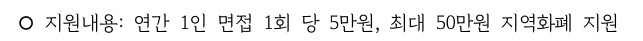 지원 내용 : 면접 1회당 5만 원 지원 연간 최대 10회 지원 → 총 최대 50만 원 지급
